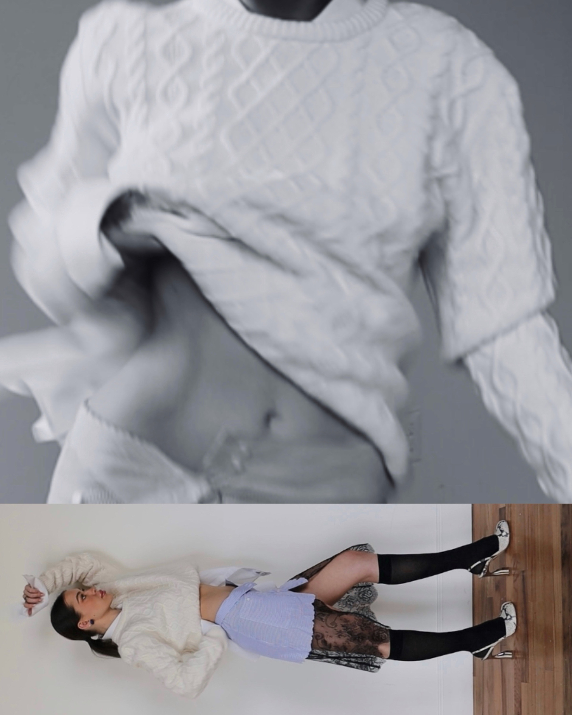 Something new with all things not. Sezane cable knit sweater styled with a men's button up, deconstructed skirt and snake skin pumps. Shot, styled and edited by me.